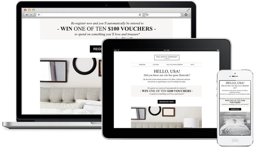 In the Autumn of 2013, The White Company launched in the USA and the emails were quickly up and running as the template designs required little modification over the UK versions. New benchmarks were set for response levels and email delivery monitored across a range of new domains.